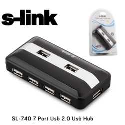 S-link SL-740 7 Port USB 2.0 USB Hub+Adaptör Siyah