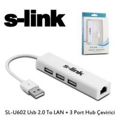 S-link SL-U602 USB 2.0 To LAN + 3Port Hub Çevirici